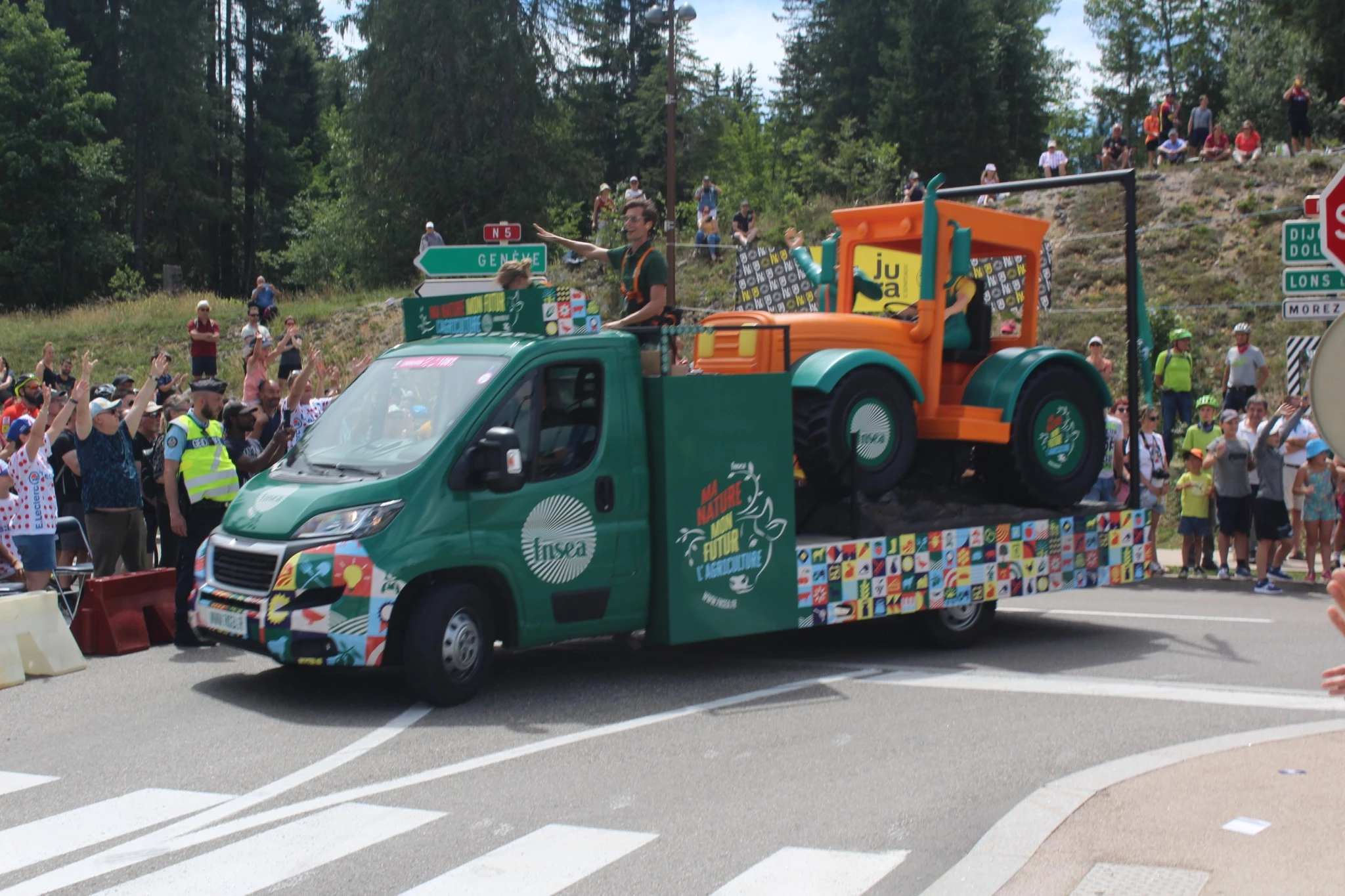 107 km de course dans le Jura puis 80 km en Suisse, retransmis en direct à la télé et vécu sur le bord de la route par le public : ce samedi 9 juillet, le Tour de France traversait le département du Nord au Sud, de Dole à Bois d’Amont, avant une arrivée à Lausanne. Toute la journée, les paysages jurassiens ont défilé, passant de la plaine doloise céréalière au vignoble d’Arbois puis aux pâturages de la zone AOP Comté.