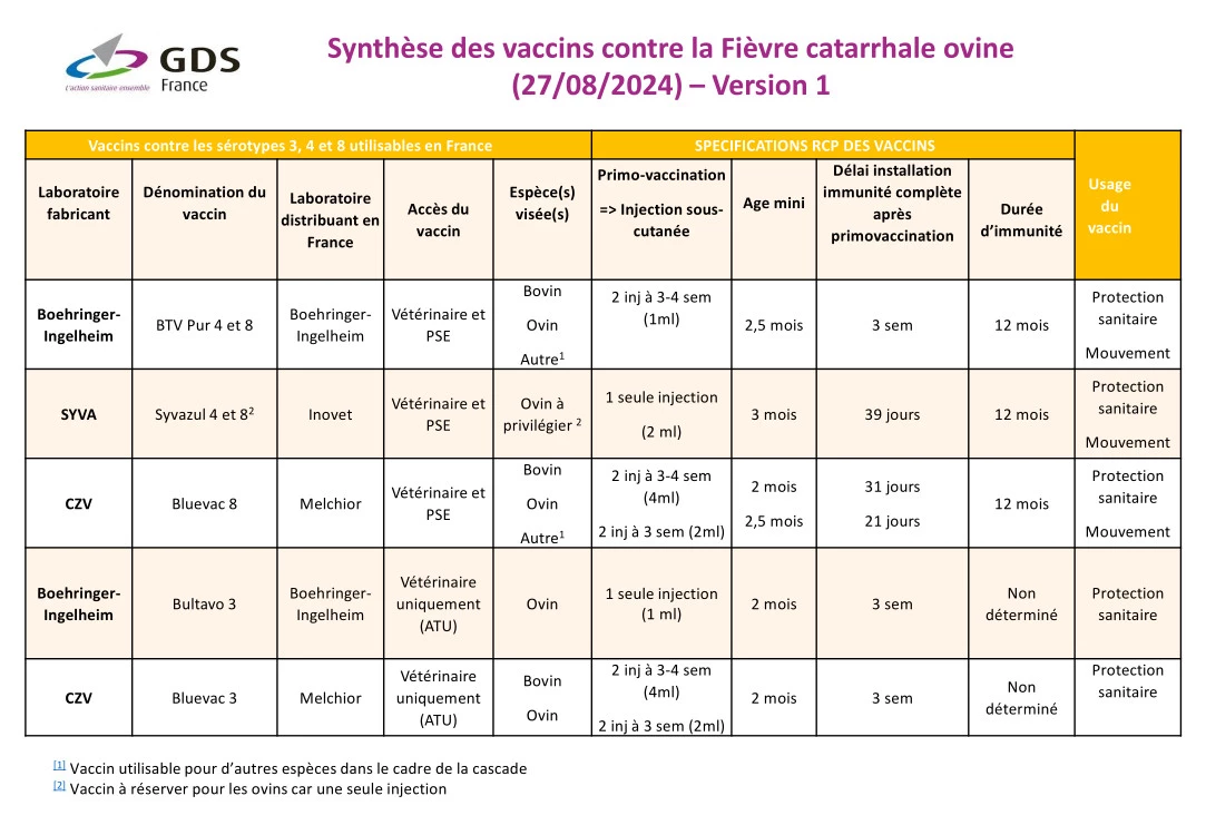 BTV3 : une campagne de vaccination volontaire ciblée contre le BTV3 a été lancée le 1/08/2024, date depuis laquelle les vétérinaires peuvent commander gratuitement les vaccins pour les élevages dont ils sont désignés vétérinaires sanitaires et situés dans la zone vaccinale (tous les départements de BFC sont dans cette zone).