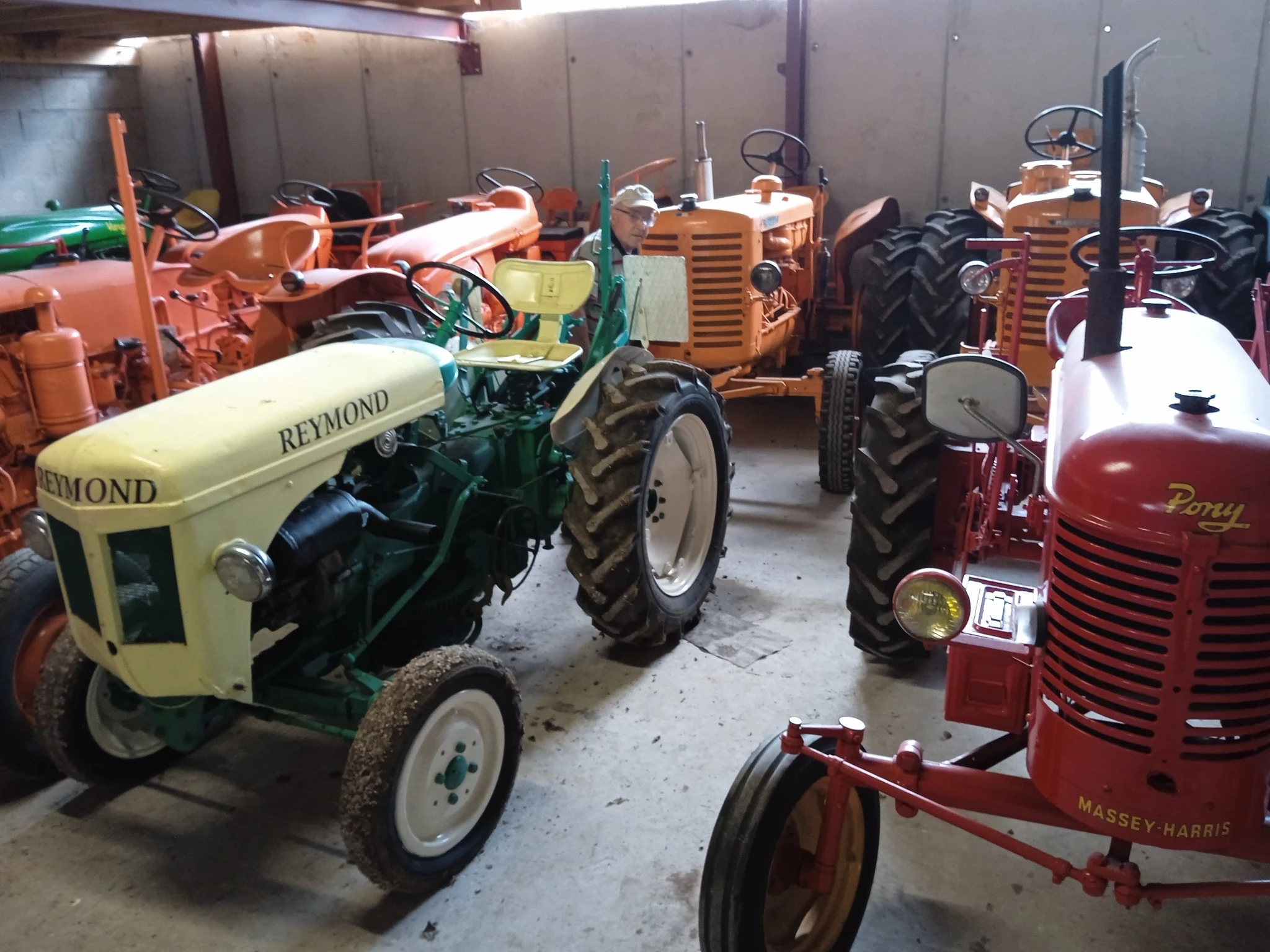 « J’étais un peu amoureux des tracteurs Renault au début », reconnaît Roger en s’arrêtant devant deux beaux modèles orange pimpants datant de 1949. Un peu plus loin, il égrène les noms des constructeurs qui ont accompagné la mécanisation dans les fermes du Jura : Chauvin à Bonlieu, Labourier à Mouchard, Energic, Reymond et Babiole à Villefranche-sur-Saône, Kiva à Lons-le-Saunier, Micromax à Bourg-en-Bresse…